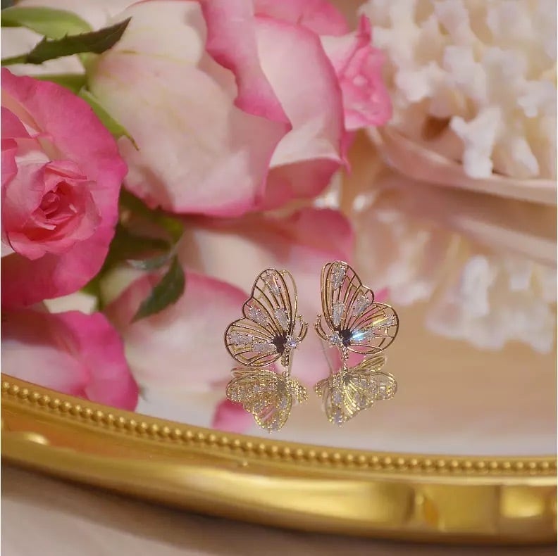 ゴールドCZダイヤ蝶々 バタフライピアスです。