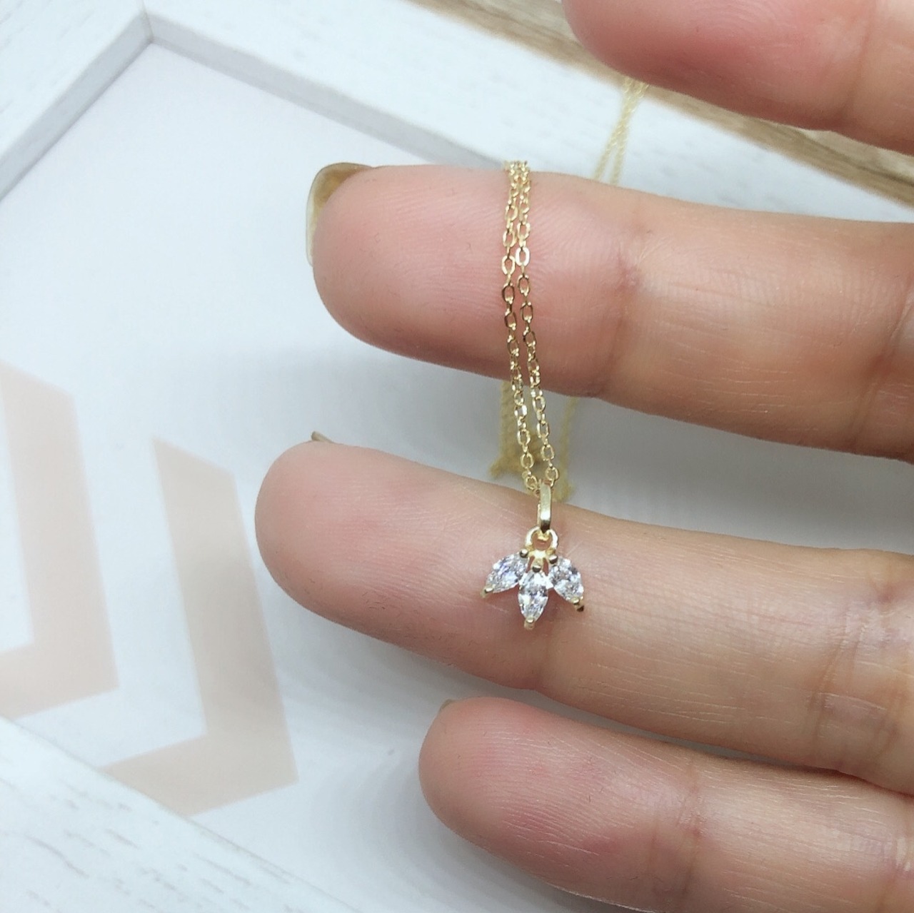 3つのアメリカ製5A級CZダイヤで睡蓮の形にして、細身のあずきチェーンを使って、繊細で上品漂うデザインです。この季節にぴったりです。