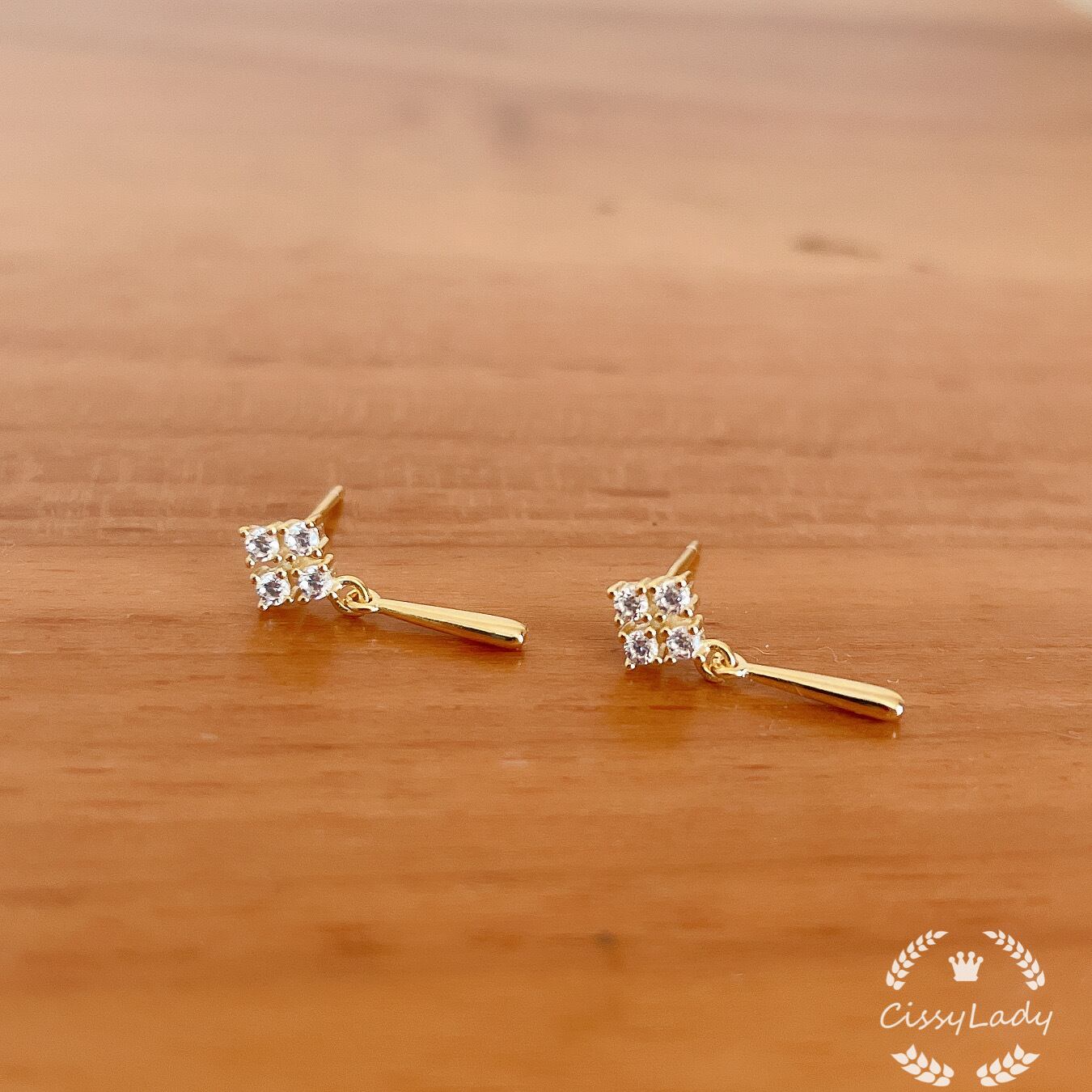 S925純銀製 ゴールド ゆらゆらスクエア ミニピアス