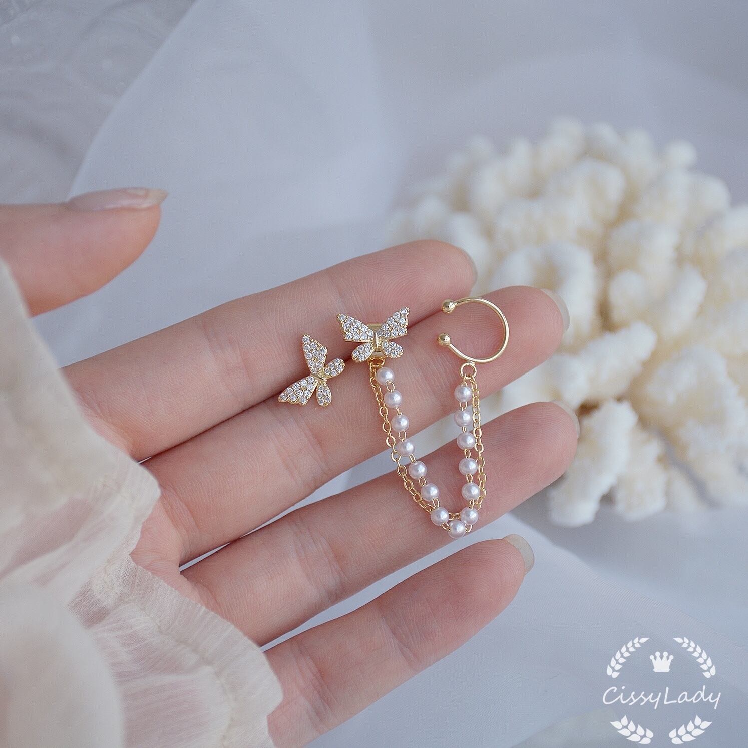 今年蝶々とイヤーカフは流行っています。