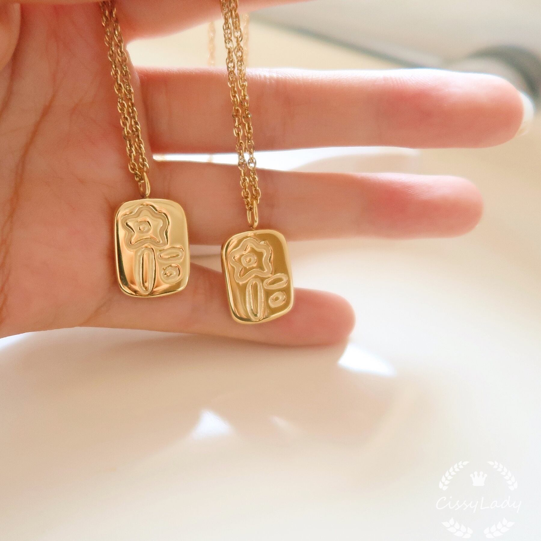 18kgp ゴールド かわいいお花のイラスト プレートネックレス