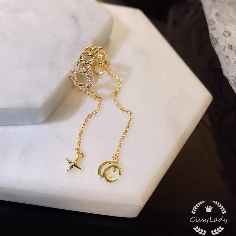 ボリュームあるゆらゆら星と月のチェーンイヤーカフ