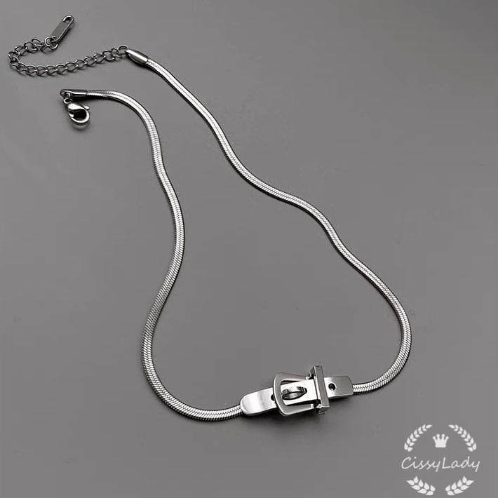 バックルをモチーフして、人気なスネークチェーンを使ってできた個性的なチョーカーです。シンプルのデザインですが、個性を出してくれる美品です。