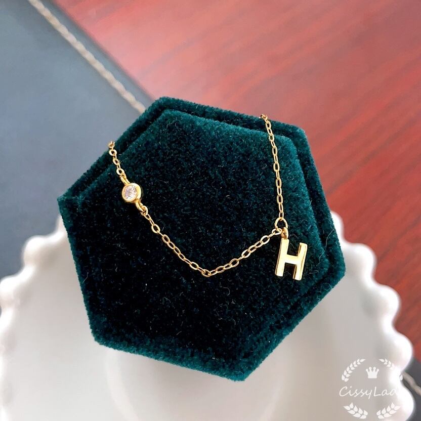 新作 Sv925純銀製 繊細 Hと一粒CZダイヤ 細身 ブレスレット