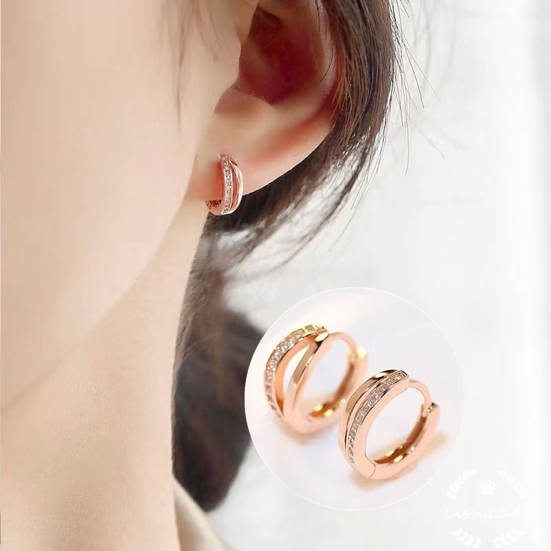 ピンクゴールド シンプル ダイヤ ミニフープピアス
