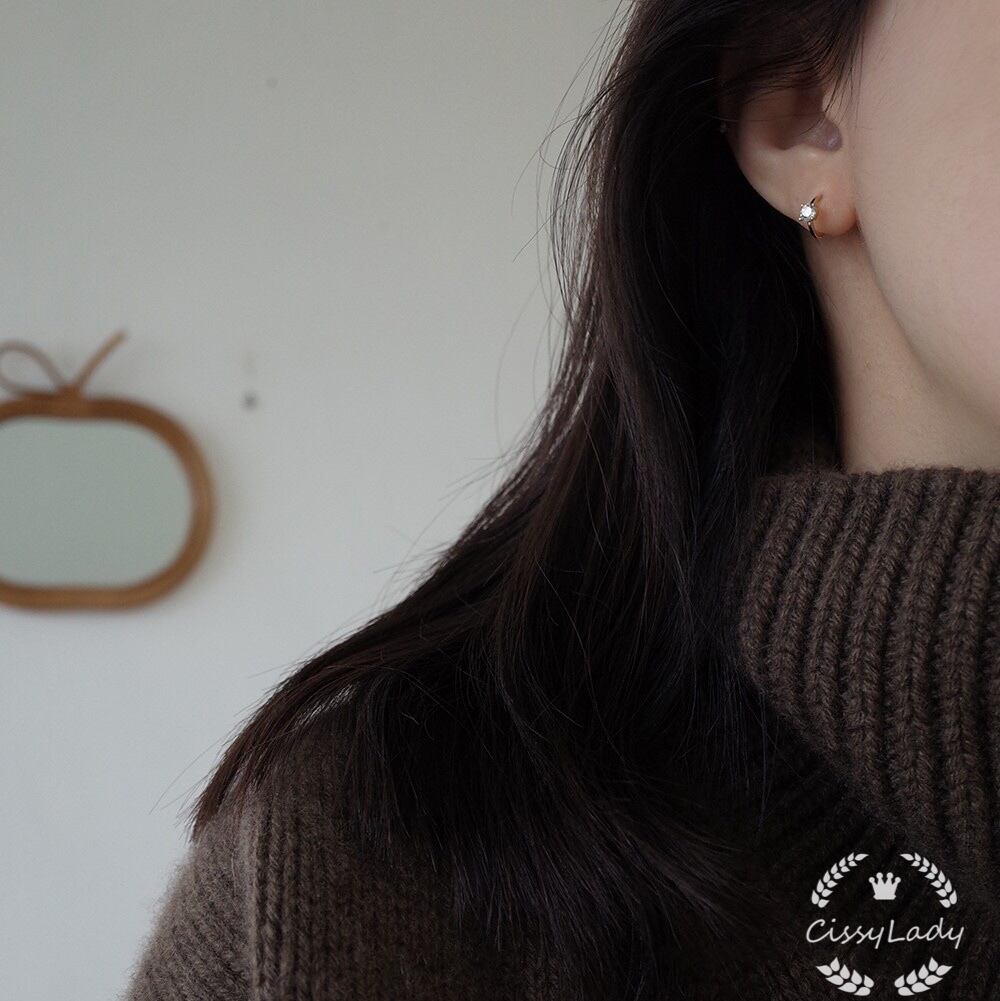 Sv925純銀製 シンプル 一粒 半フープ ピアス 可憐 E8120