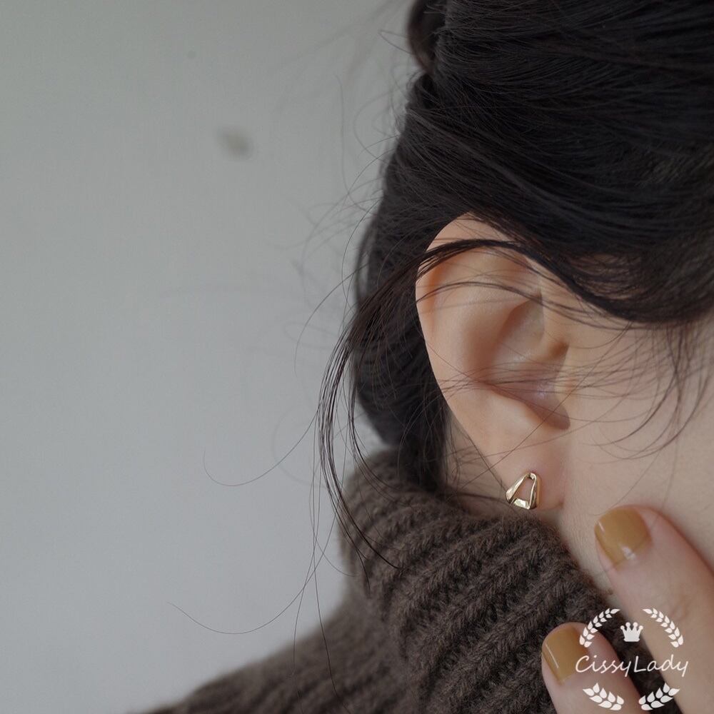 Sv925純銀製 シンプル 変形 ラウンド ピアス 繊細 大人女子 E8188