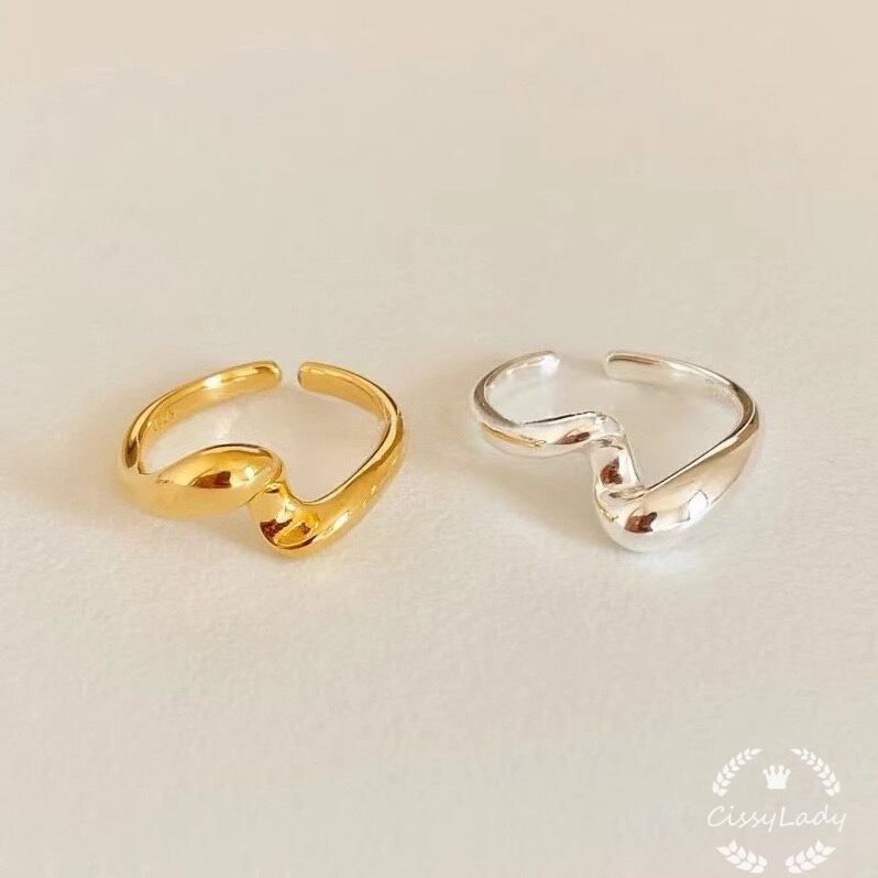 シルバーとゴールド コンビ ウェーブ クロス 指輪 リングセット