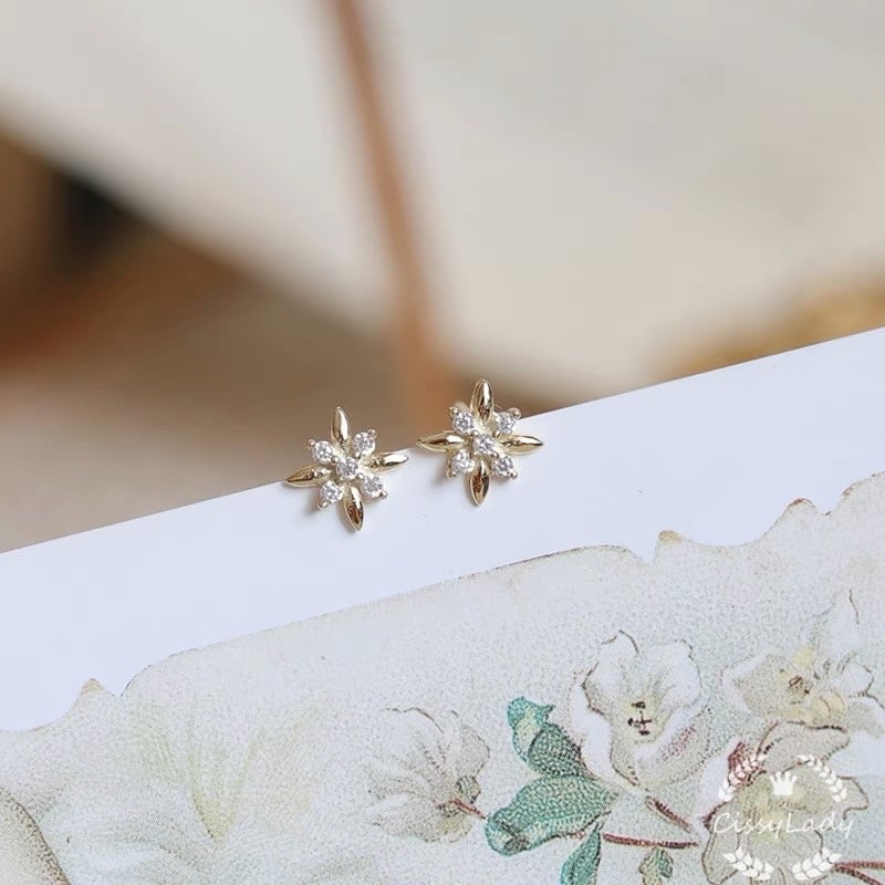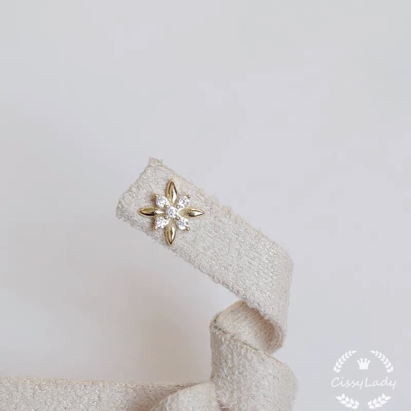 Sv925純銀製 繊細 シンプル 十字の花 クロス ミニピアス E8173