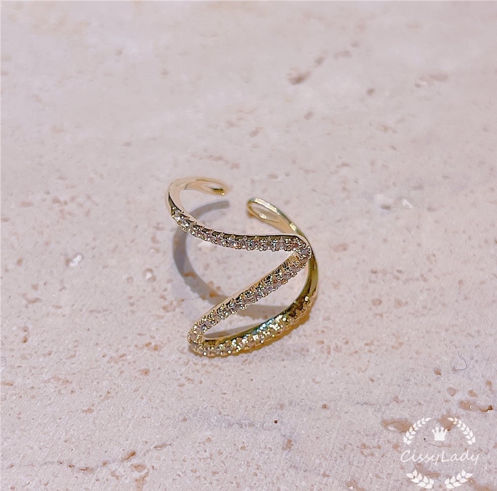 金メッキ 繊細 おしゃれ ウェーブ Z字 指輪 リング ring フリーサイズ