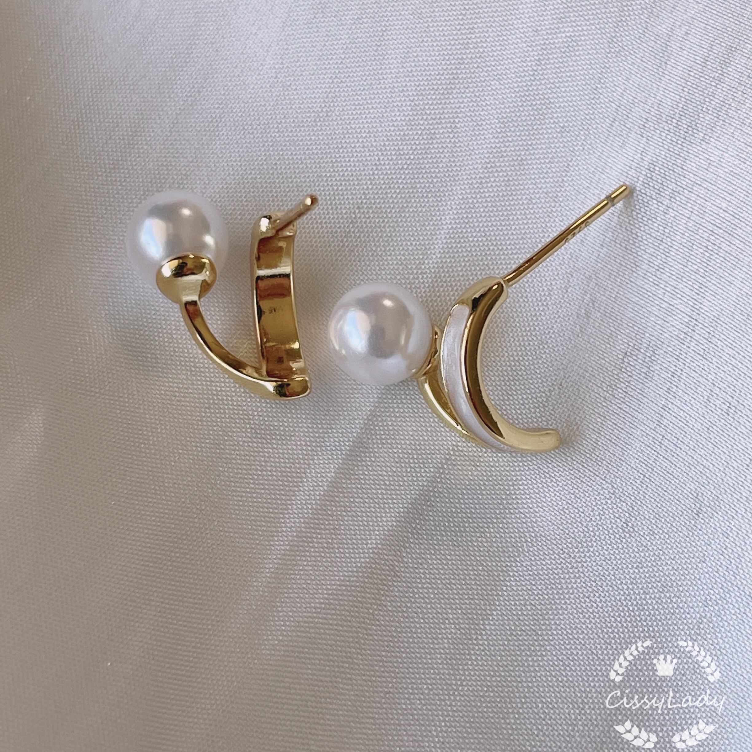 Sv925純銀製 淡水パール 半フープミニピアス K18 繊細 大人女子 YC5650