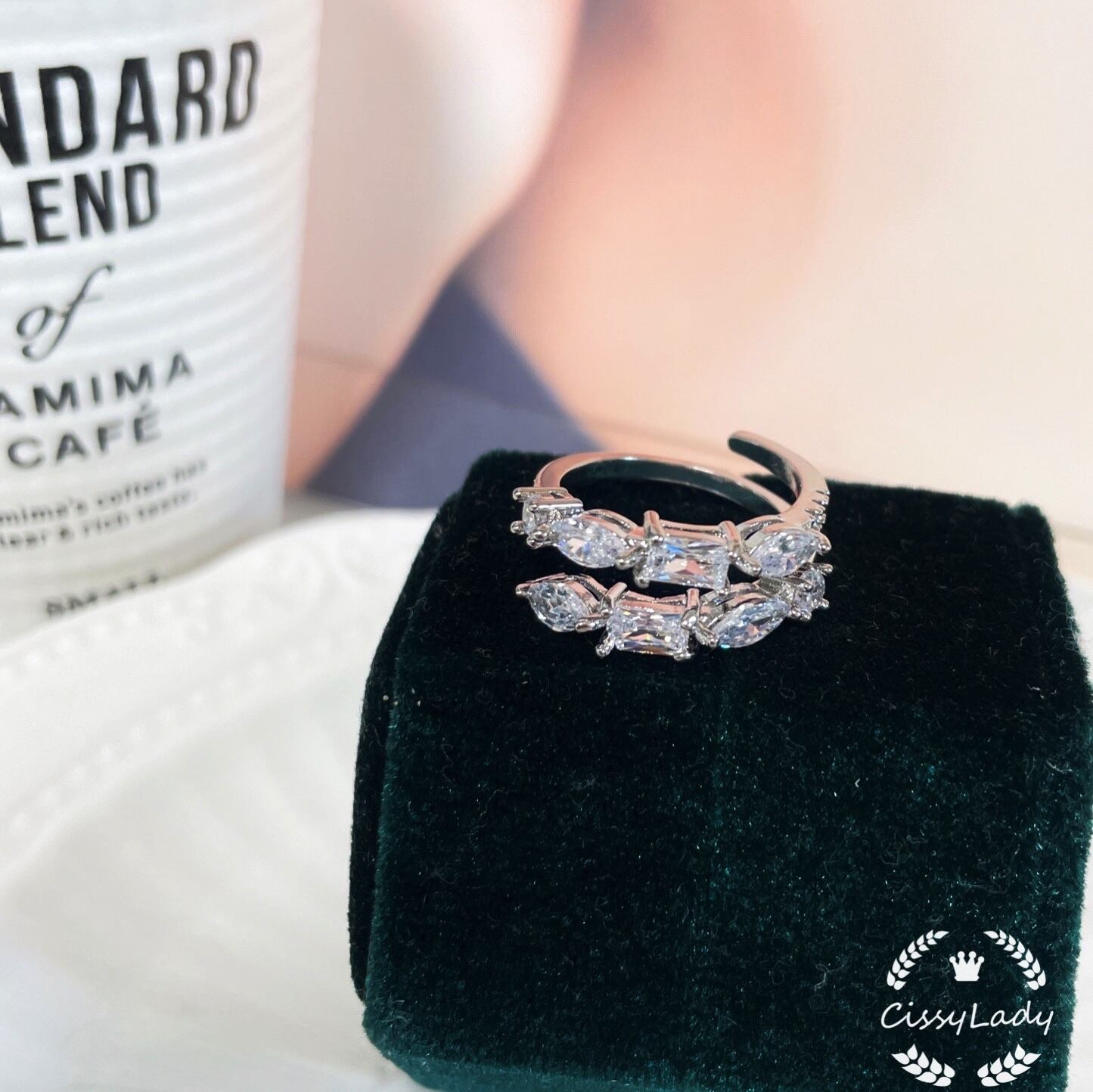 ・形の異なる高品質なCZダイヤは並んでいる指輪
