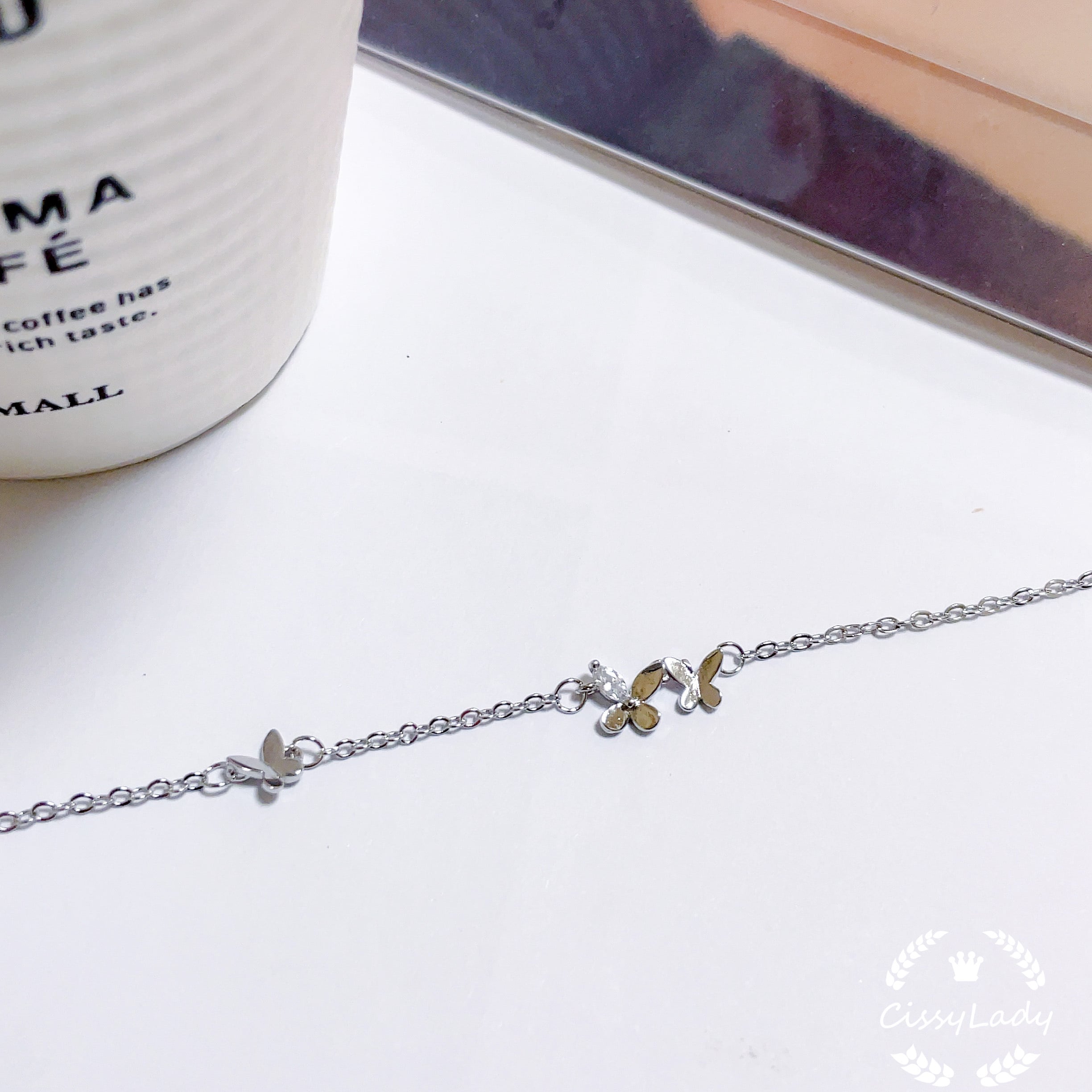複数の蝶々をモチーフしてできたブレスレットです。