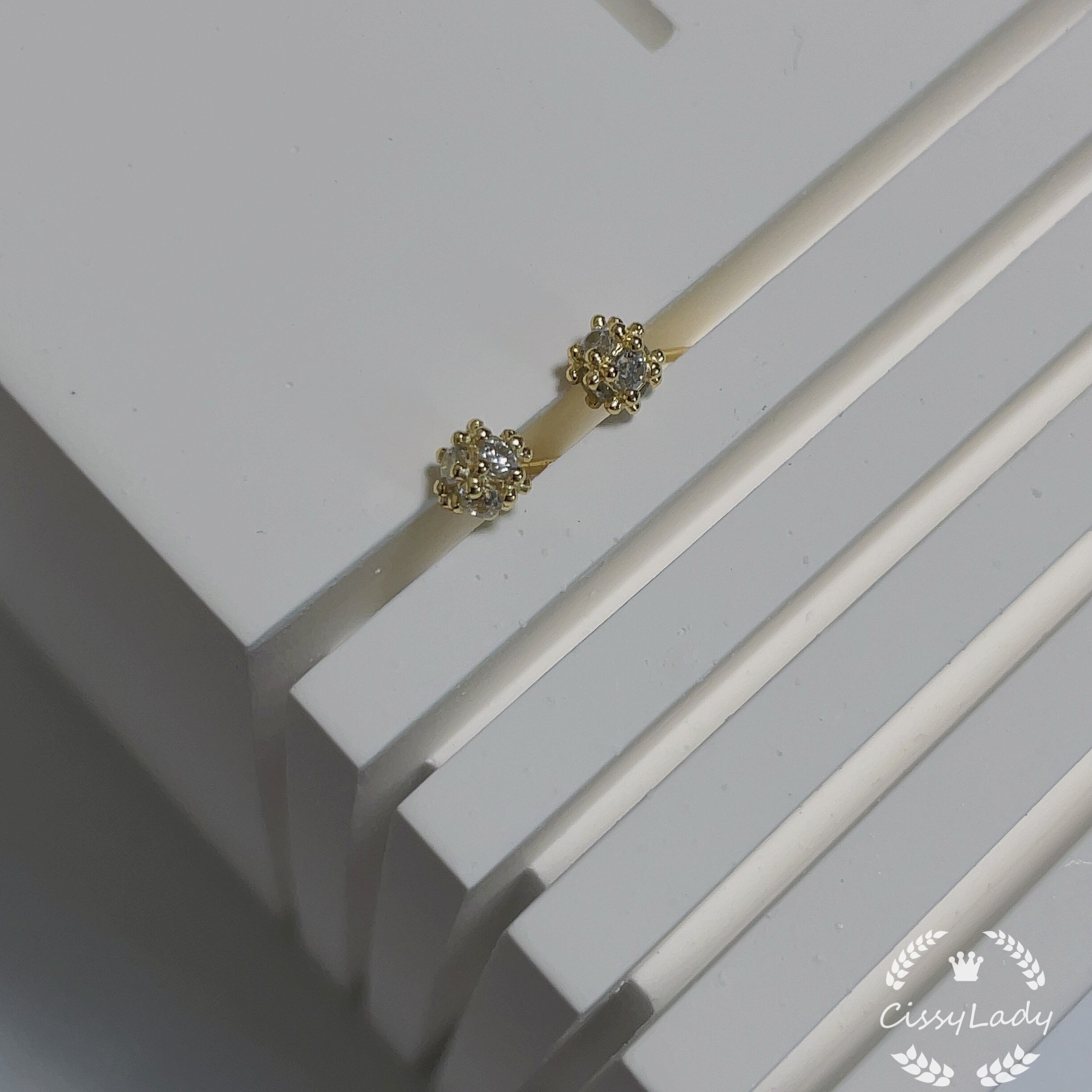 Sv925純銀製 ゴールド 立体 CZダイヤボール ミニピアス イヤリング silver925 高品質 E8061