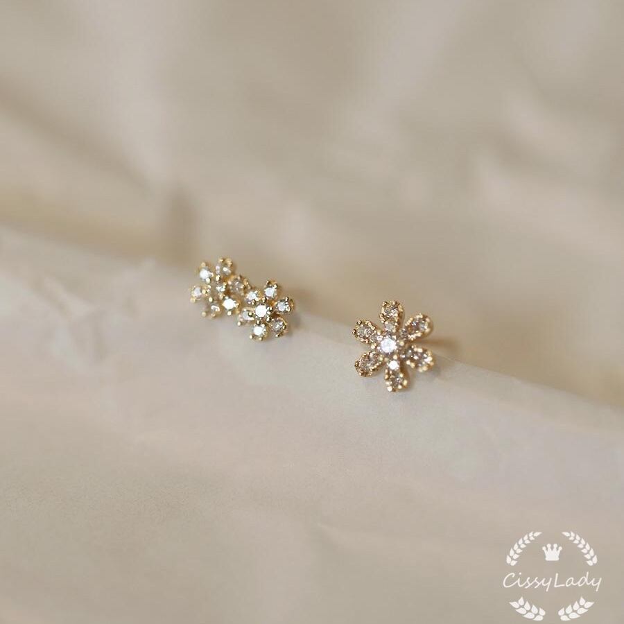 Sv925純銀製 ゴールド 左右違う フラワー お花 ミニピアス イヤリング silver925 高品質 E8236