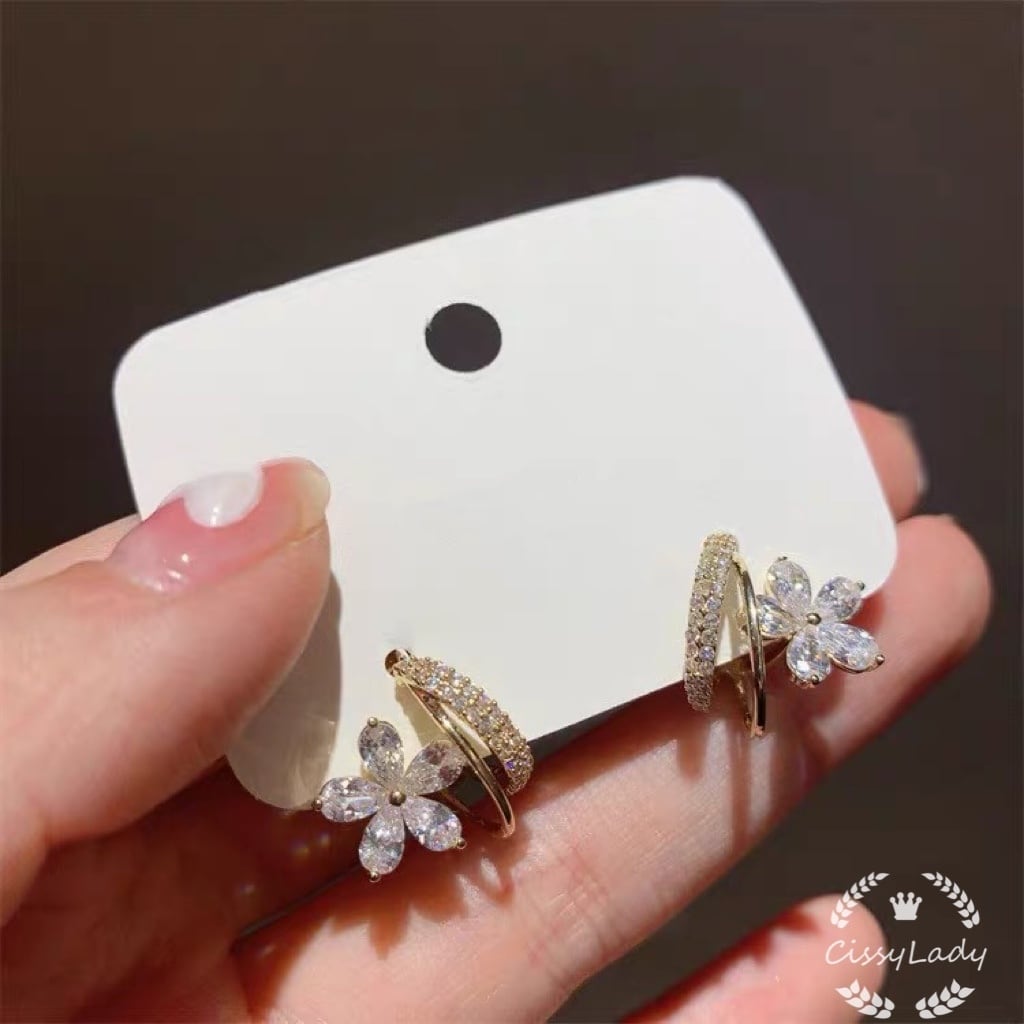新作 繊細 CZダイヤののフラワー 花 と二つカンのピアス 高品質 妻へ 母の日 ギフト
