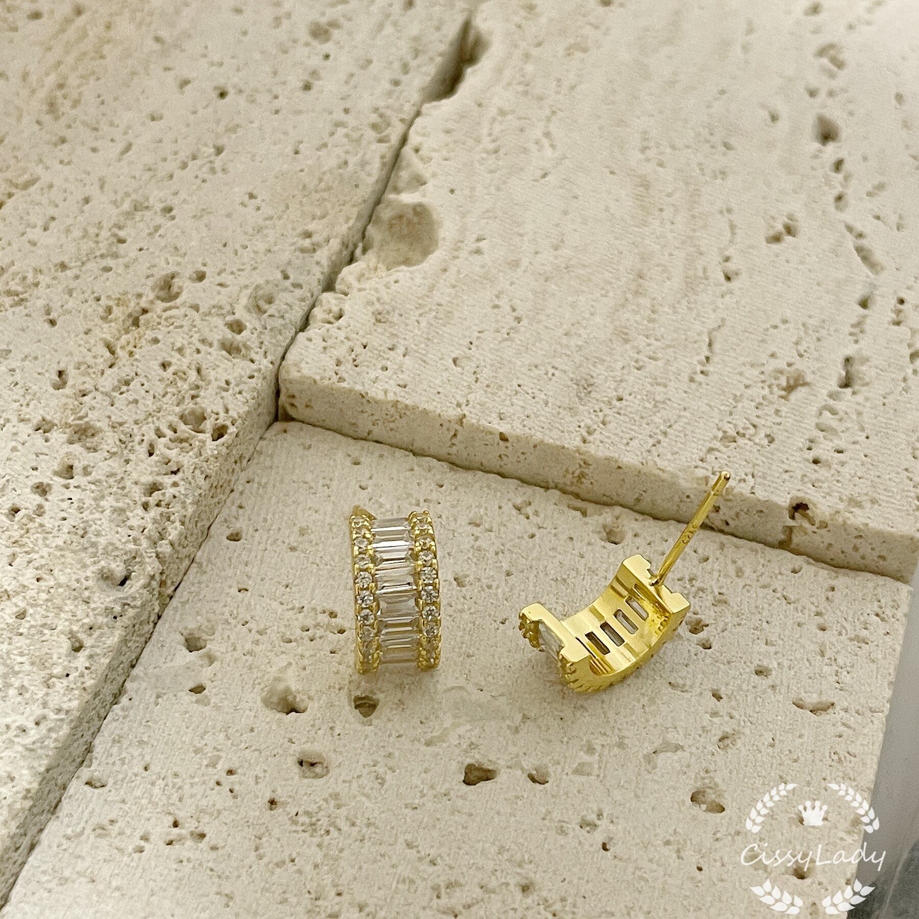 新作 Sv925純銀製 キラキラ CZダイヤ 半フープ ピアス
