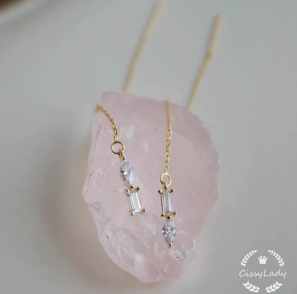 Sv925 シンプル スーキマと長方形CZダイヤ チェーンピアス アメリカンピアス silver925