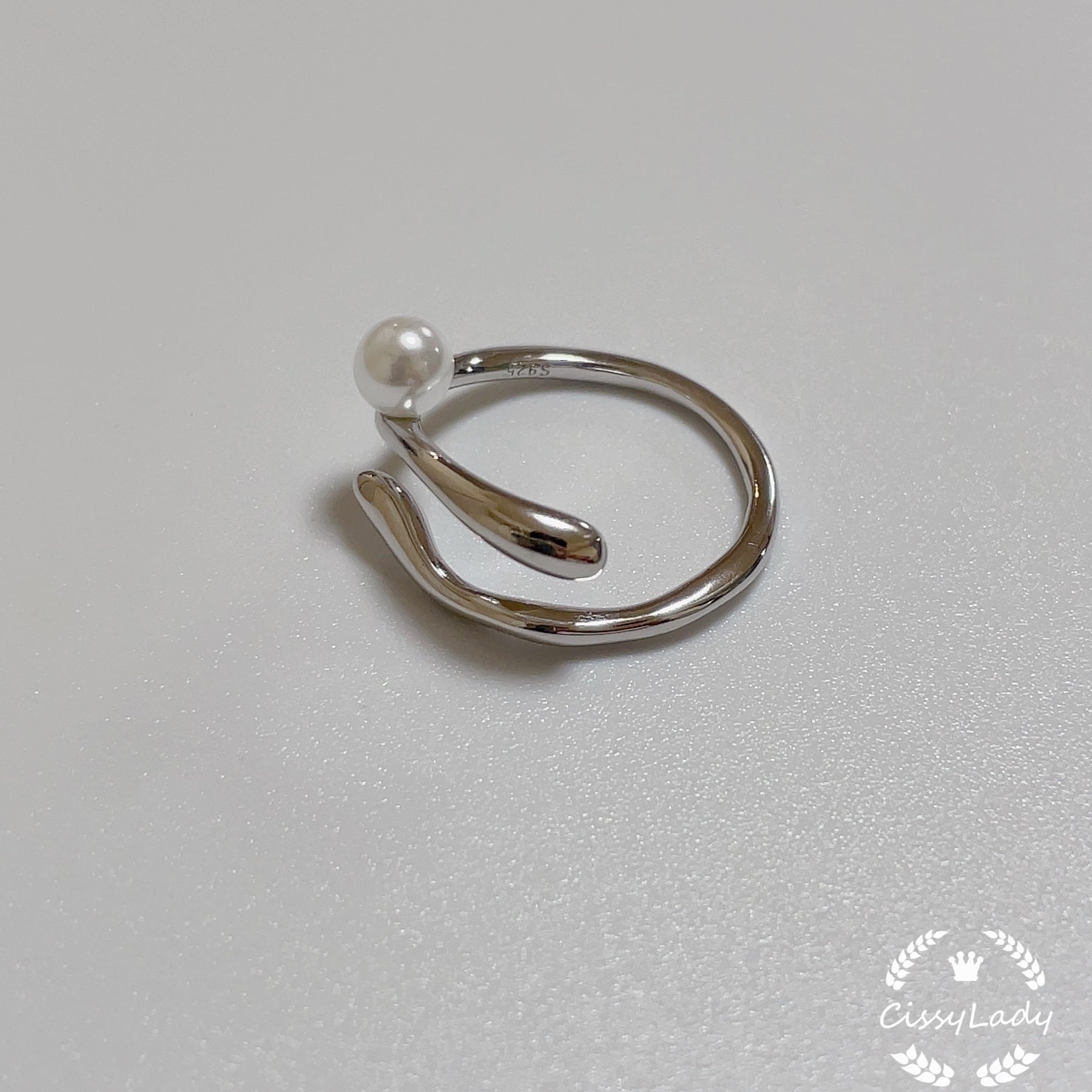 Sv925純銀製 シンプル パール アンバランス リング 指輪 リング プラチナ仕上げ