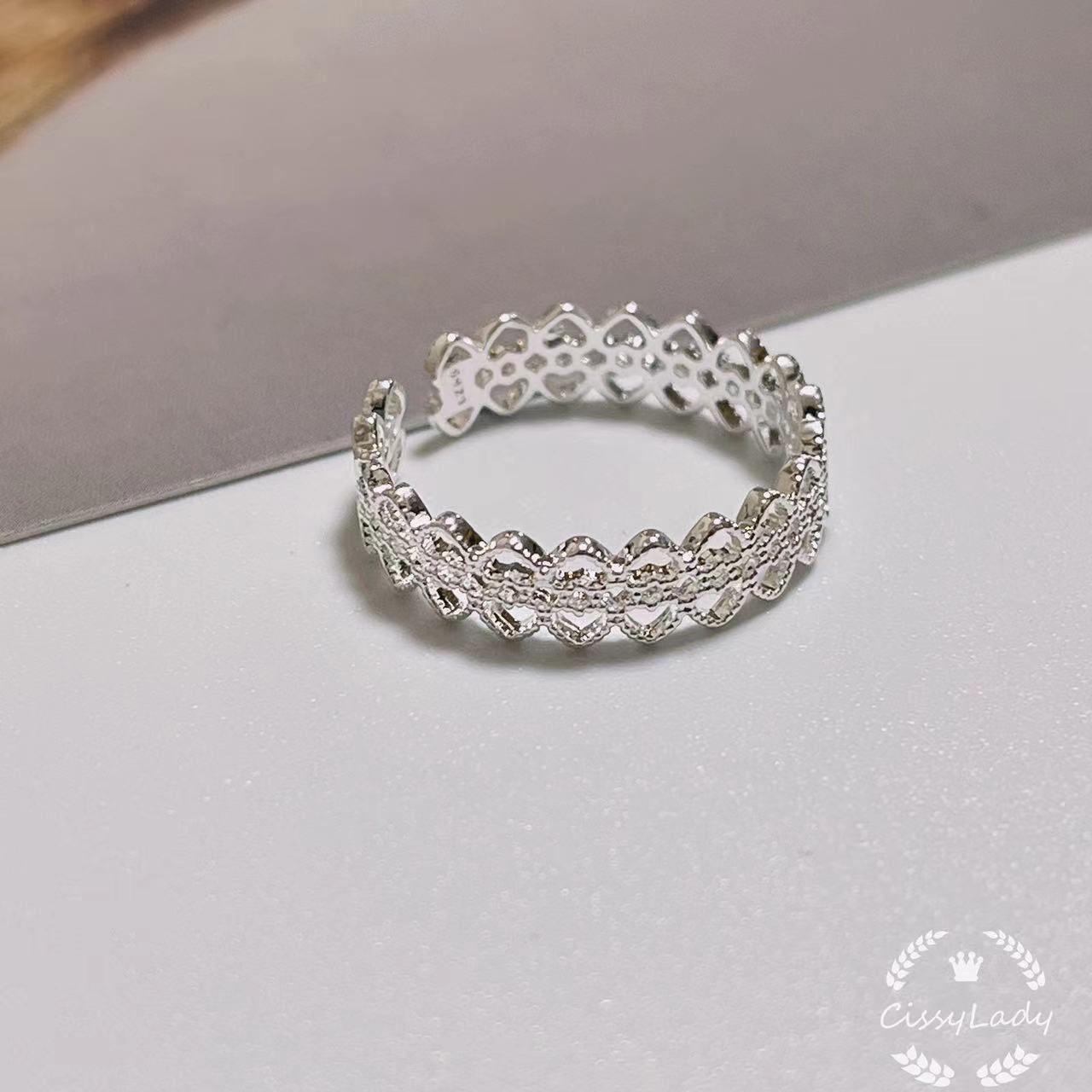 シルバー 透かすレース 指輪 リング ring フリーサイズ 細め