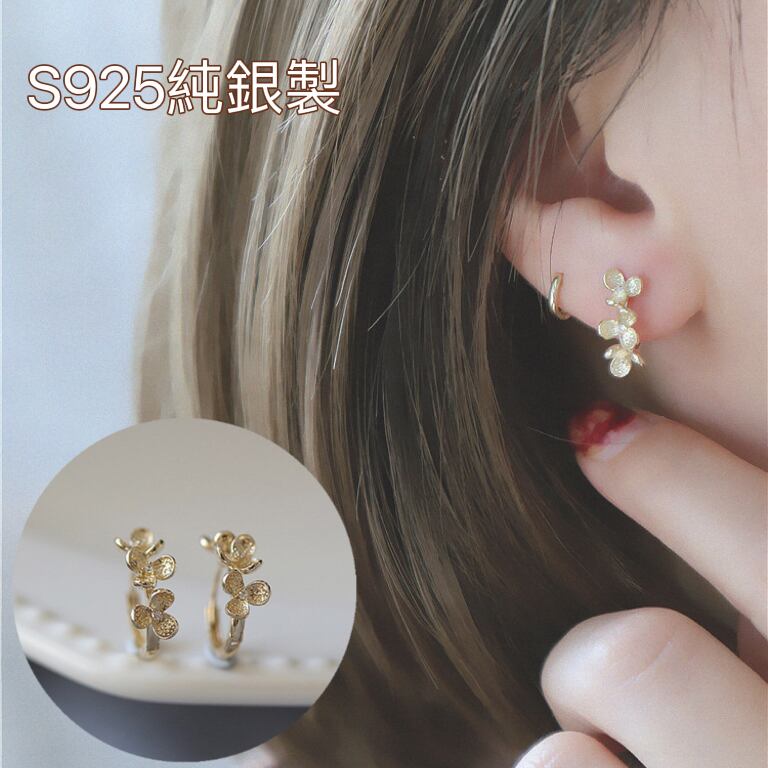 Sv925 3輪のフラワー 花 フープピアス K18 YC5518