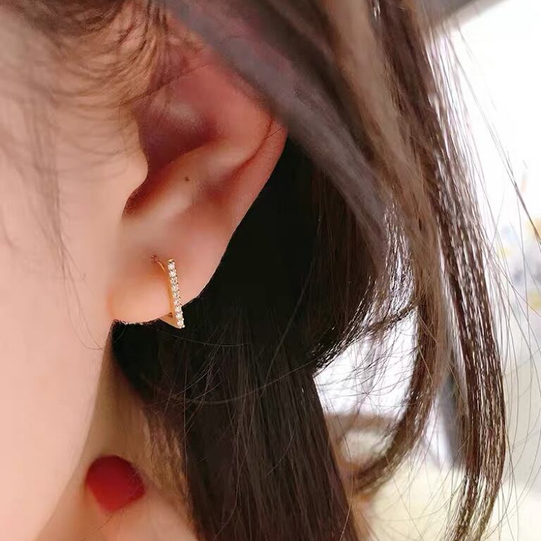 ・シンプルなCZダイヤ縦棒棒型のミニフープピアス