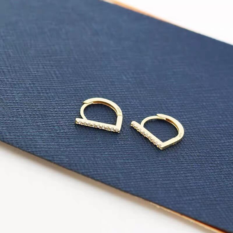 Sv925 ゴールド 縦棒 CZダイヤ ミニフープピアス 14K仕上げ 大人可愛い 大人女子 上品 オフィスカジュアル Ek1003