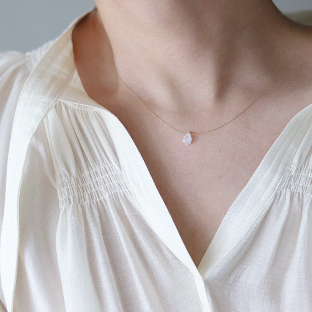 ★CICI★18kgpワイヤー 雫天然石 ムーンストーンネックレス K18 プレゼント 金属アレルギー対応 付けっぱなし