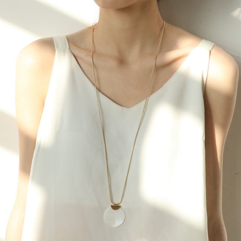 ★CICI★ステンレス シェルプレート ロングネックレス K18仕上げ ニッケルフリー