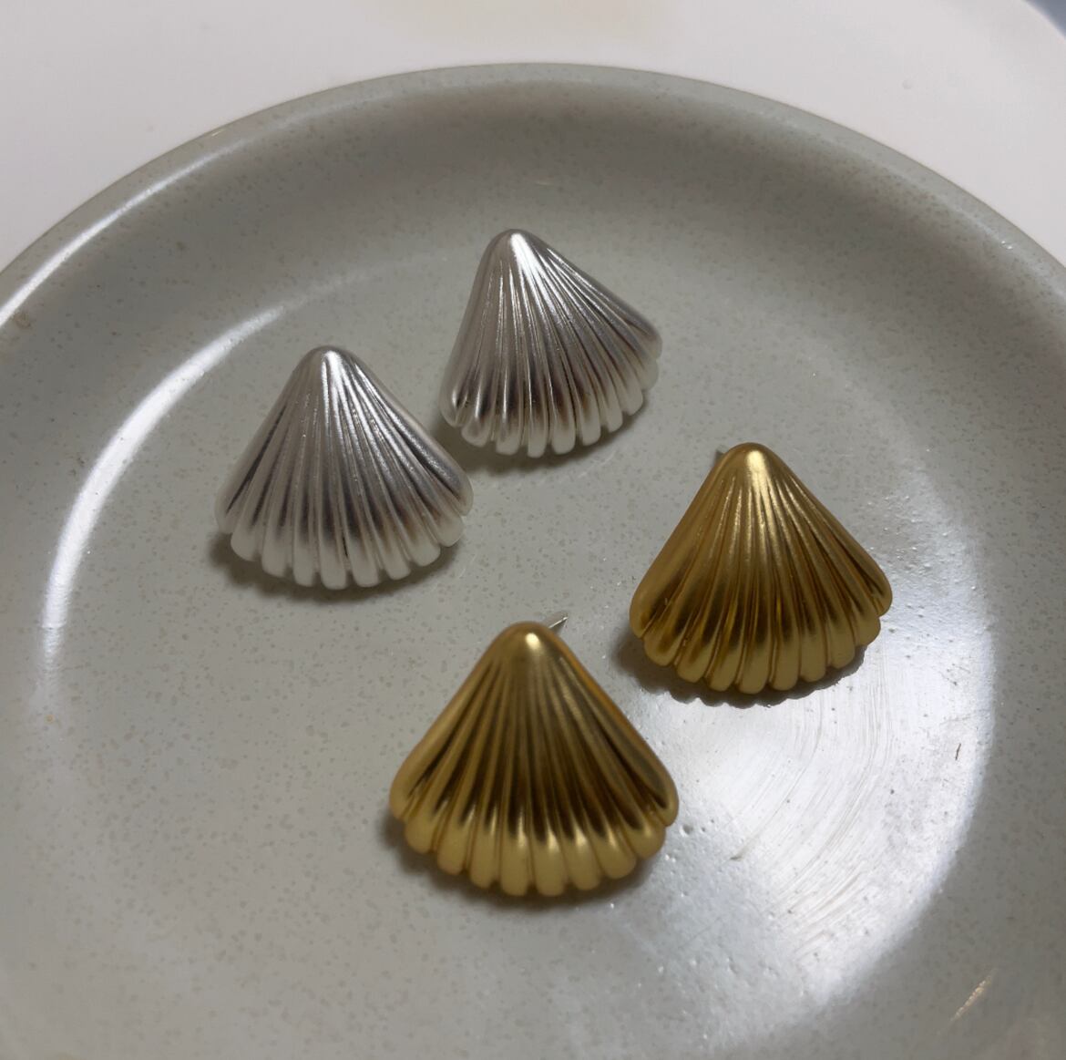 ★CICI★ 2色 18kgp 艶消し シェル 貝 カジュアル ピアス K18