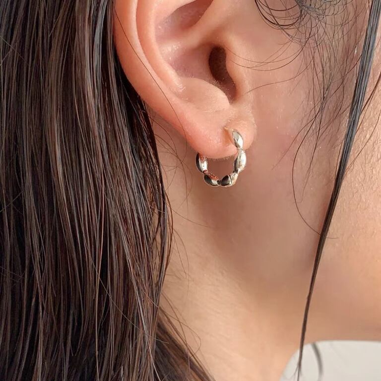 S925製 米粒 ミニフープピアス カジュアル シンプル シルバー K18