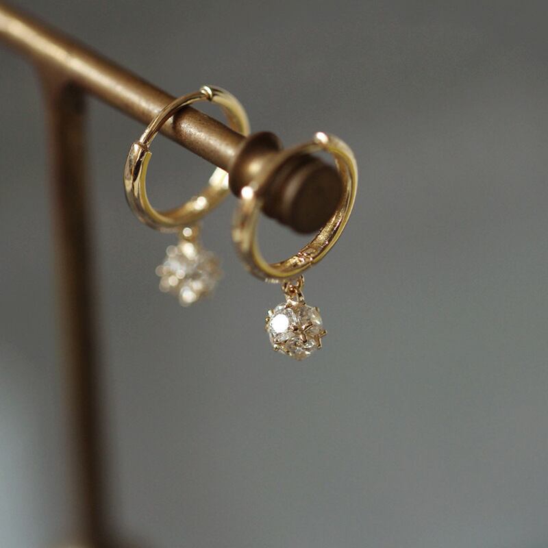 S925製 CZダイヤボール ミニフープピアス カジュアル シンプル シルバー K18