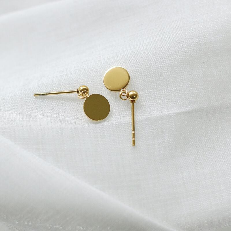 good luckの英文字があるミニ丸いプレートをモチーフしたピアスです。