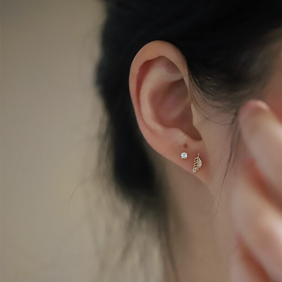 Sv925製 羽毛 フェザー 小さい 小ぶり ミニピアス/ノンホール silver925 高品質 ニッケルフリー
