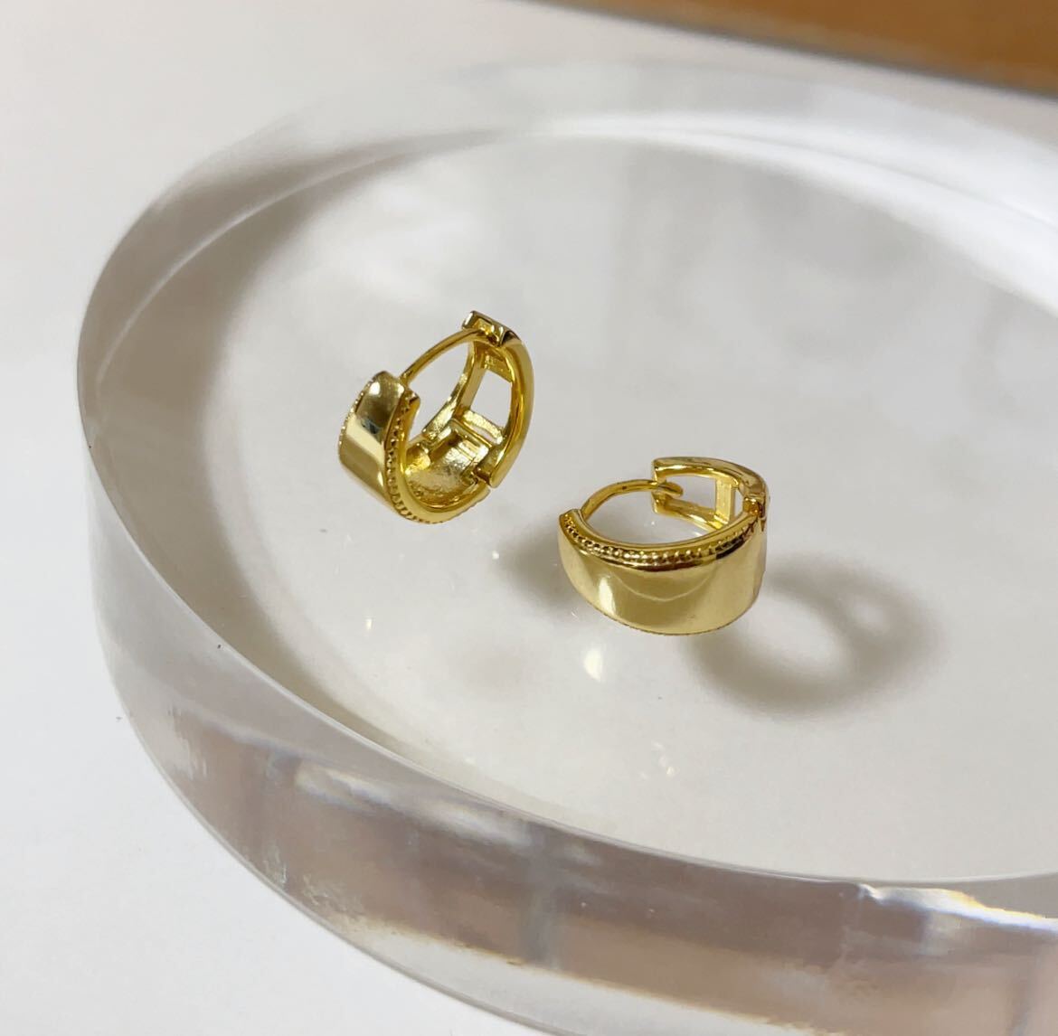 S925純銀製 ゴールド ミニフープピアス カジュアル シンプル K18 ワンタッチ